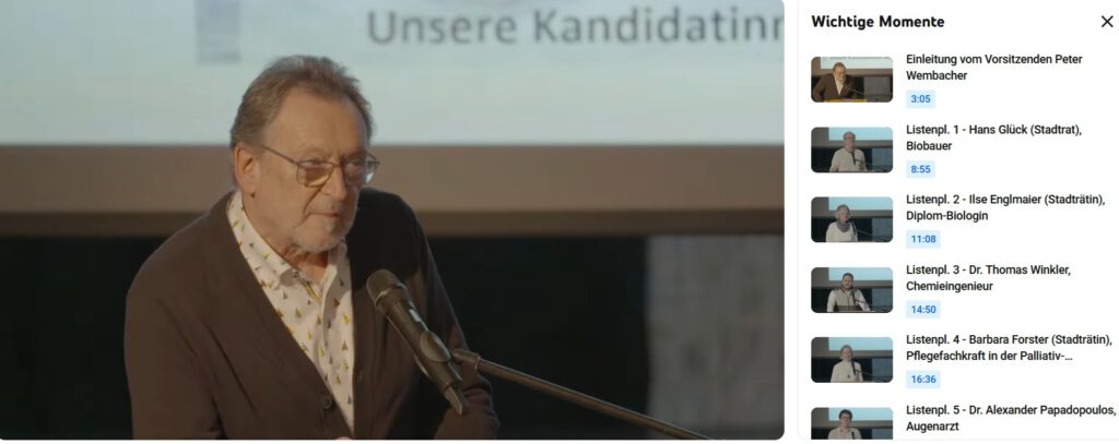 Auf das Bild oben klicken, um den Live Stream zu starten. Das Video ist bei YouTube in Kapitel eingeteilt, um bequem darin navigieren zu können. Es empfiehlt sich daher auf „Ansehen auf YouTube“ unten im Video anzuklicken.